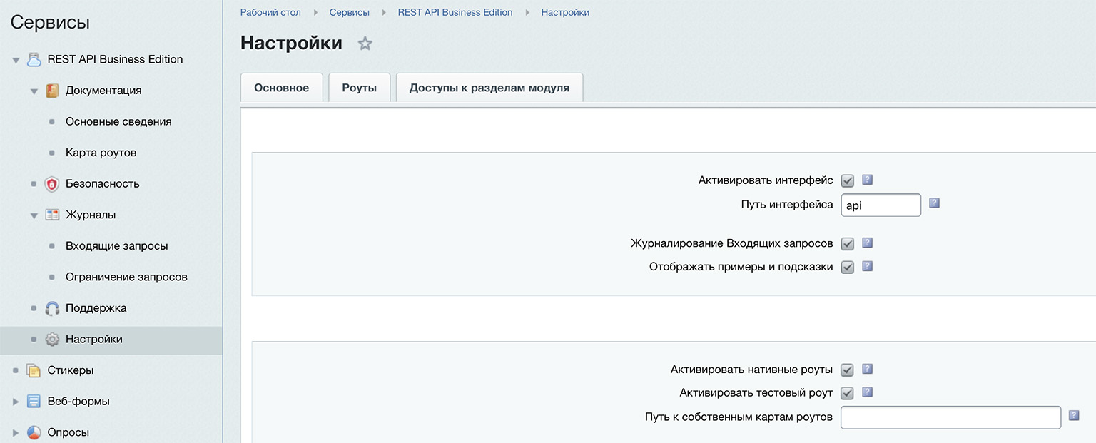 Документация 1С-Битрикс: Модули artamonov.rest Начало работы Первые шаги Для начала работы необходимо: Активировать интерфейс. Указать путь интерфейса. Для тестирования интерфейса необходимо активировать тестовый роут. Для использования нативных роутов необходимо активировать нативные роуты.